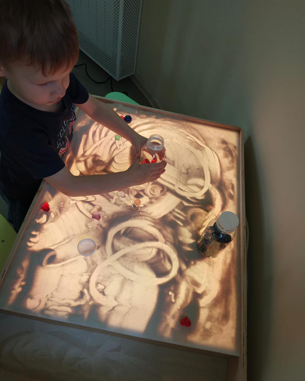 Песочная терапия помогает высказать то, на что не хватает слов. Этот метод особенно актуален для детей дошкольного возраста. Ведь маленьким детям сложнее выражать свои мысли из-за недостаточного речевого развития. У ребенка есть возможность построить свой мир из песка с использованием различных фигурок животных и предметов.